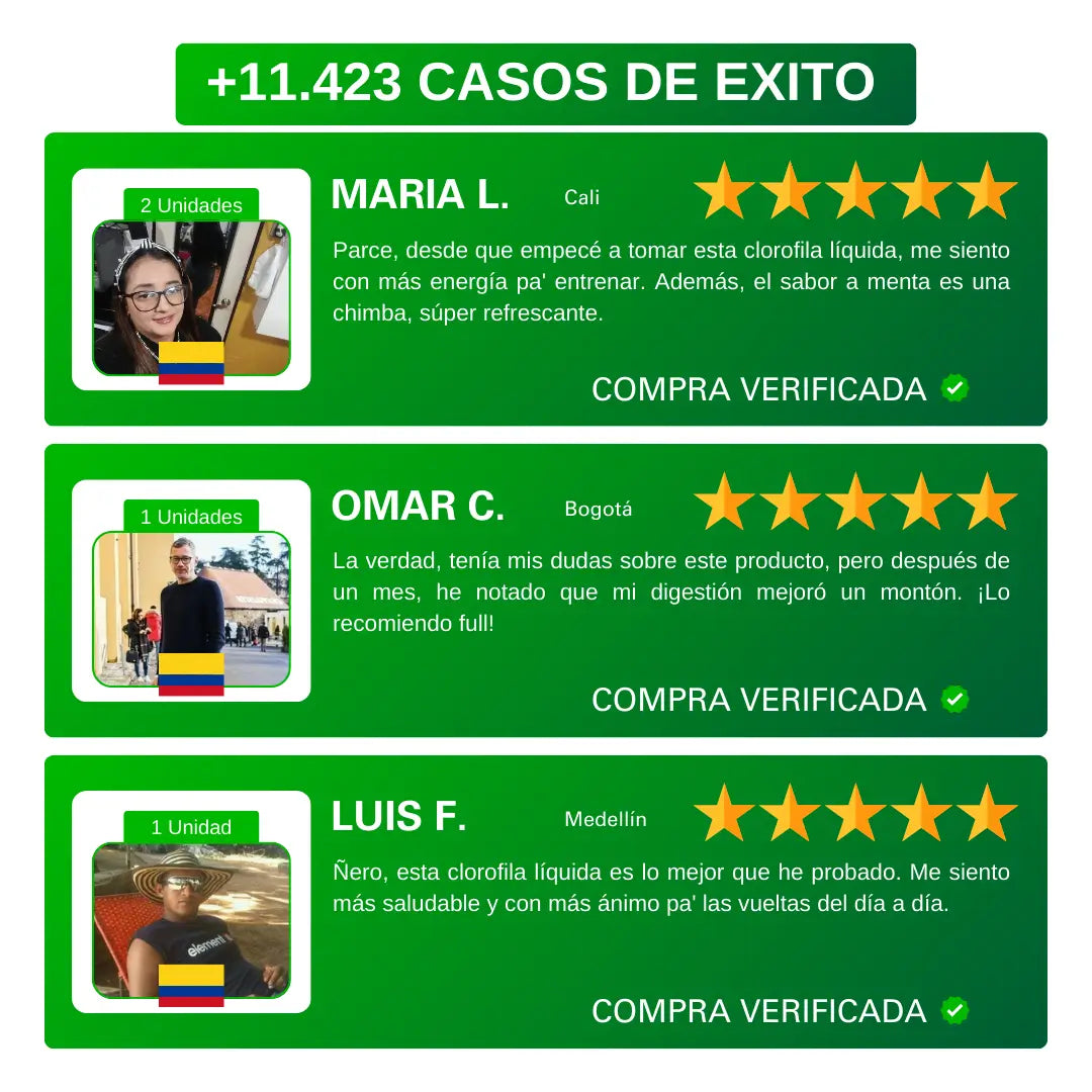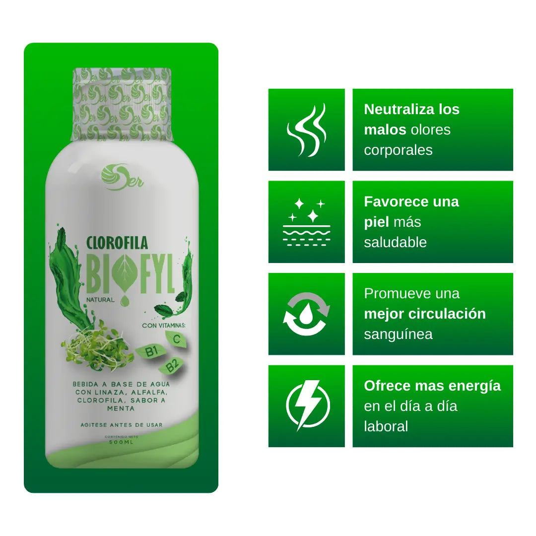COMPOSICION: Agua Micro filtrada Vehículo Brotes de Alfalfa Fuente rica en vitaminas, minerales y antioxidantes. Ayuda en la desintoxicación y mejora la salud general. Color Clorofila Desintoxicante natural que mejora la oxigenación de las células y promueve la salud del sistema inmunológico. Benzoato De Sodio Conservante que previene el crecimiento de bacterias y mohos Sorbato De Potasio Conservante que ayuda a mantener la frescura y la estabilidad del producto. Ácido Cítrico Regulador de acidez que mantiene el equilibrio del pH, mejorando la estabilidad y el sabor del producto. Menta en Hojas Saborizante natural que proporciona un sabor fresco y agradable, además de tener propiedades digestivas. Vitamina C Antioxidante que refuerza el sistema inmunológico y mejora la absorción de hierro. Vitamina B6 Importante para el metabolismo de las proteínas y la producción de neurotransmisores. Vitamina B12 Esencial para la producción de glóbulos rojos y el mantenimiento del sistema nervioso central.