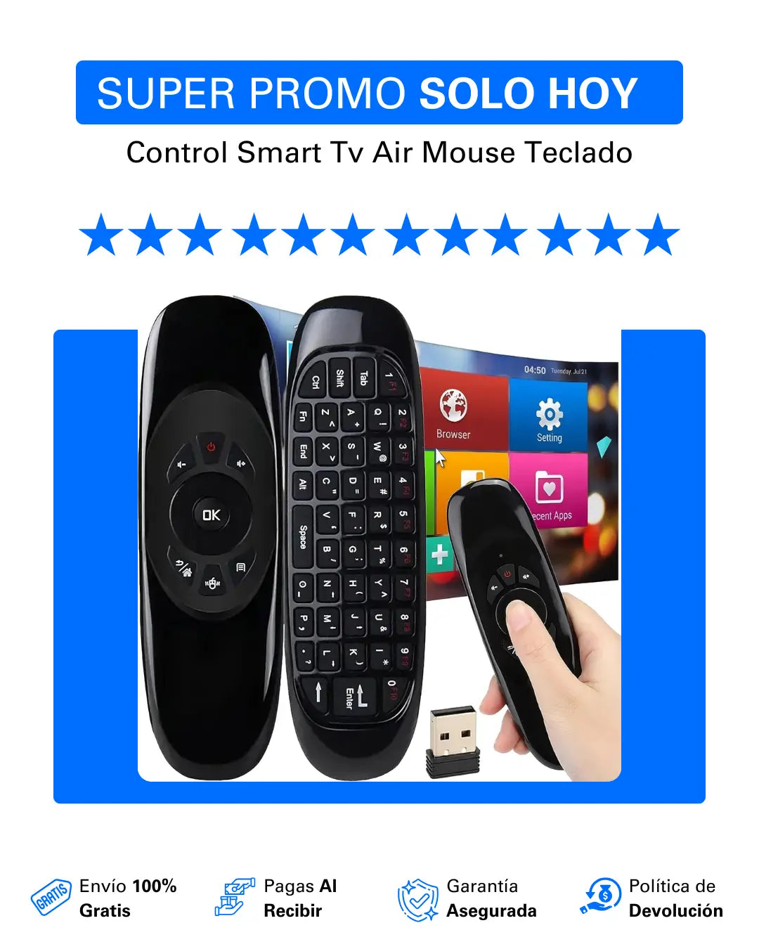 ¿Te cuesta escribir con el control de tu Smart TV? Este teclado inalámbrico lo hace facilísimo. Navega, escribe, busca o presenta con precisión, estilo y sin cables estorbosos.