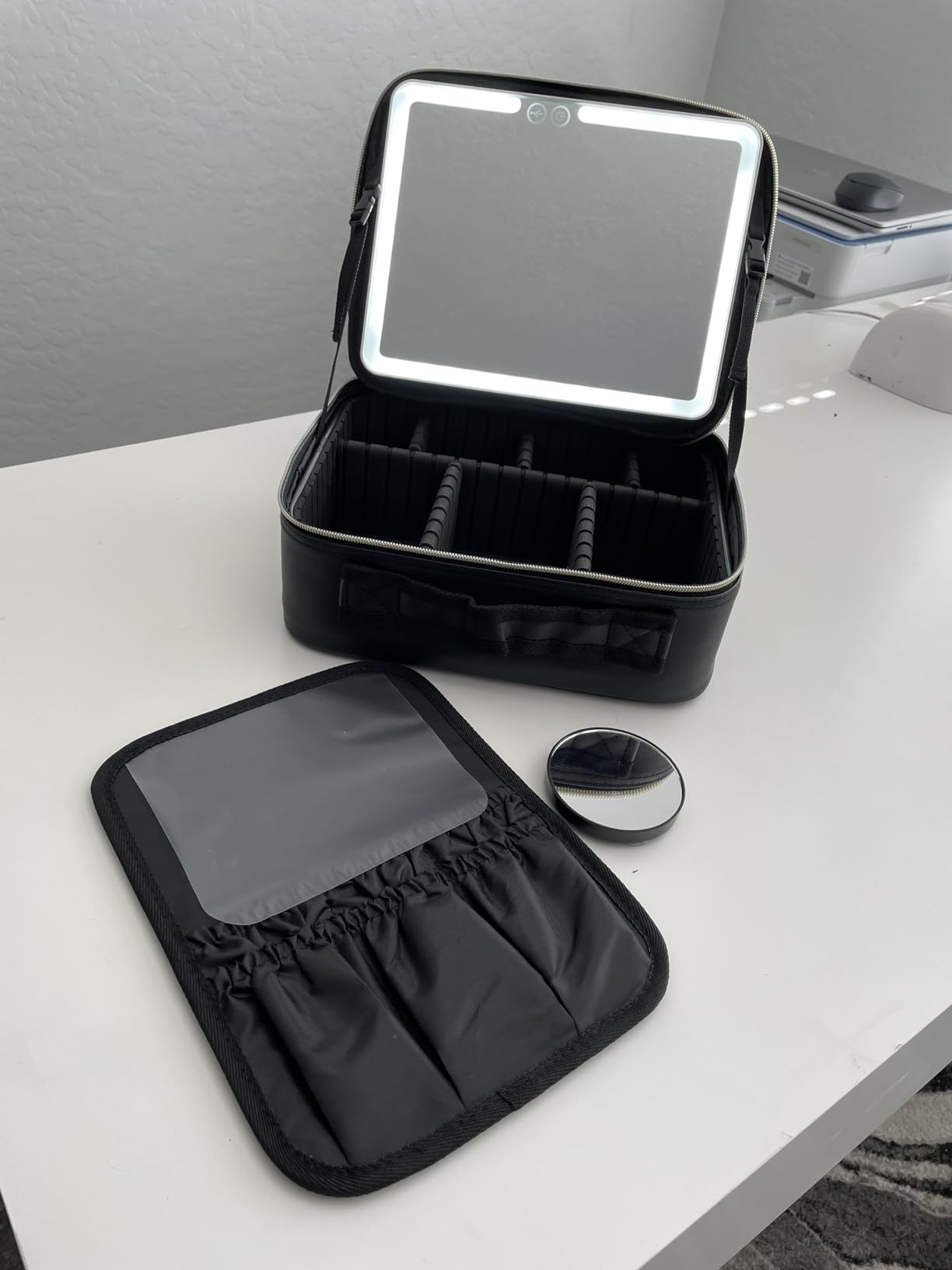 ✅ Organización Perfecta: Compartimentos ajustables y una tablilla flexible mantienen tus productos de maquillaje protegidos y en orden, ahorrando espacio.