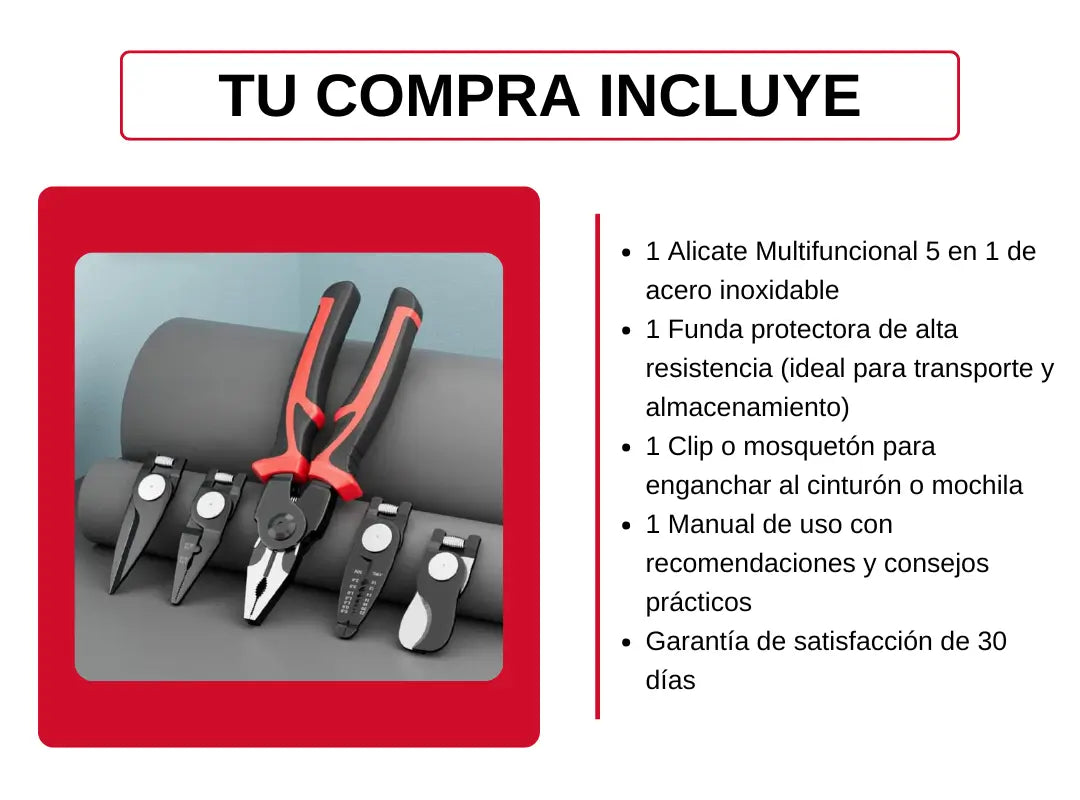 Lleva en tu bolsillo la solución para cualquier arreglo con este alicate 5 en 1. Compacto, duradero y listo para trabajar donde lo necesites.