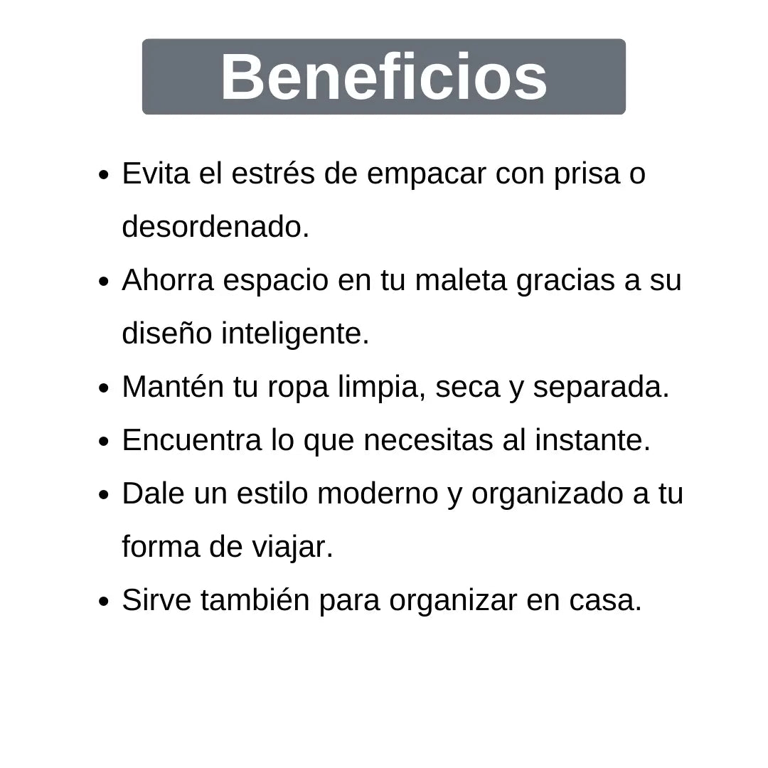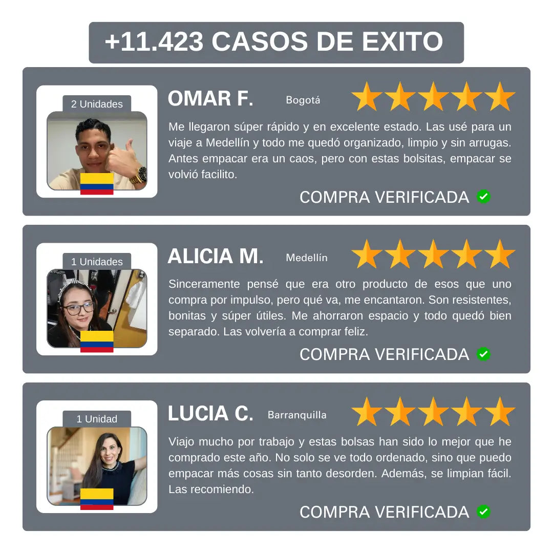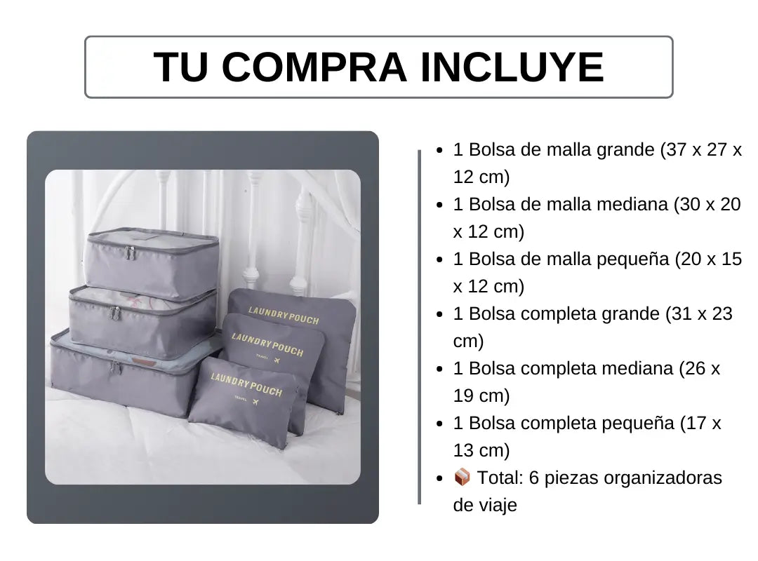 Con estas bolsas, cada prenda tiene su lugar. No más maletas desordenadas, ni estrés buscando esa camisa que no aparece.